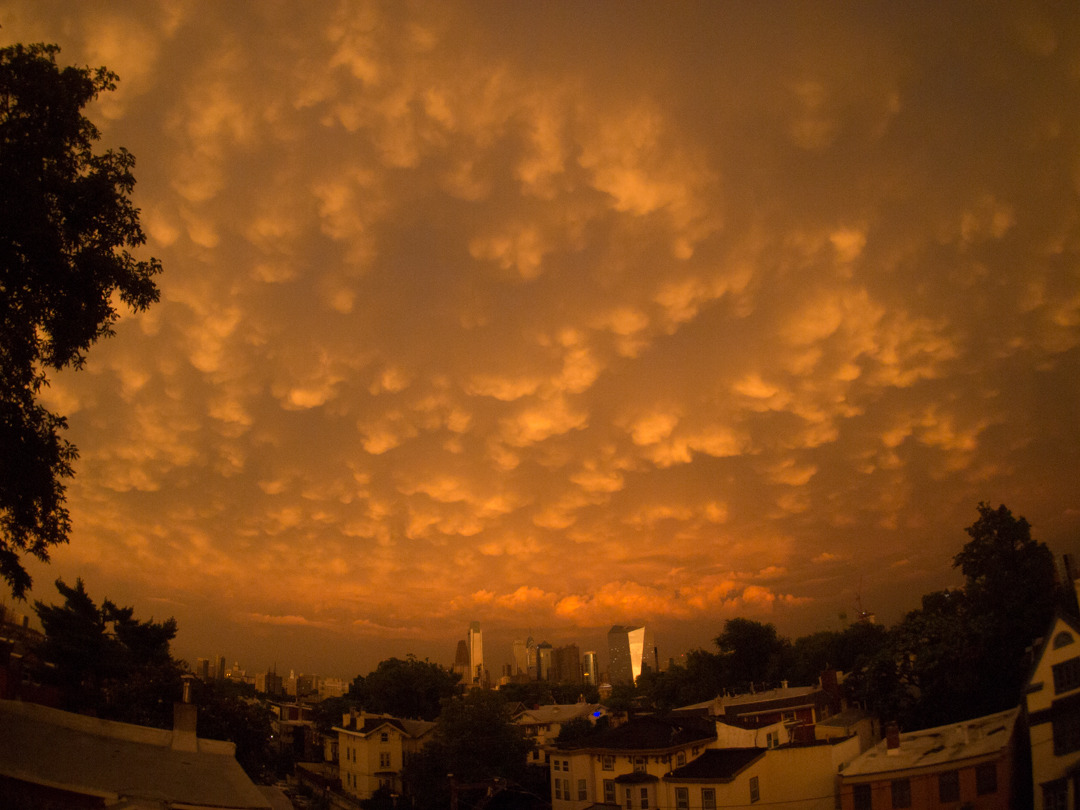 Actual-color, post-storm mammatus clouds over Philly.